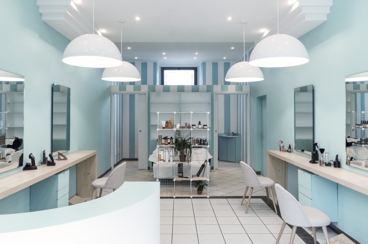 Nonostante l’articolazione planimetrica e le necessità funzionali abbiano suggerito una scansione in quattro (zona d’attesa e accoglienza, spazio taglio e pettinatura, zona lavaggi e cabine) il linguaggio impiegato abbraccia tutto il locale generando così uno spazio unico, avvolgente ed inclusivo.