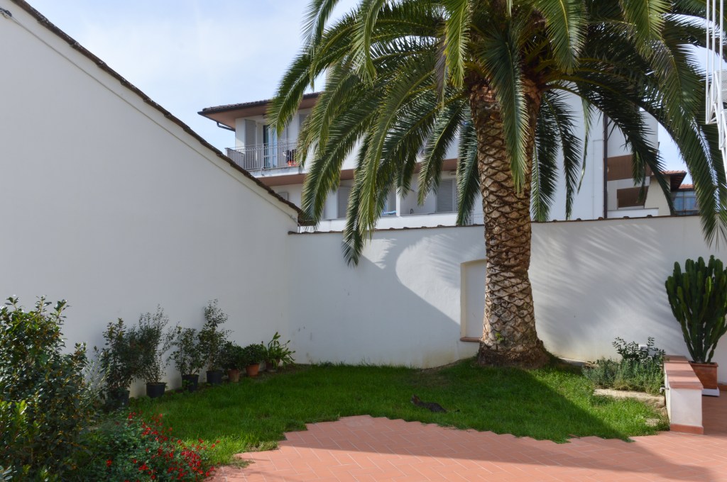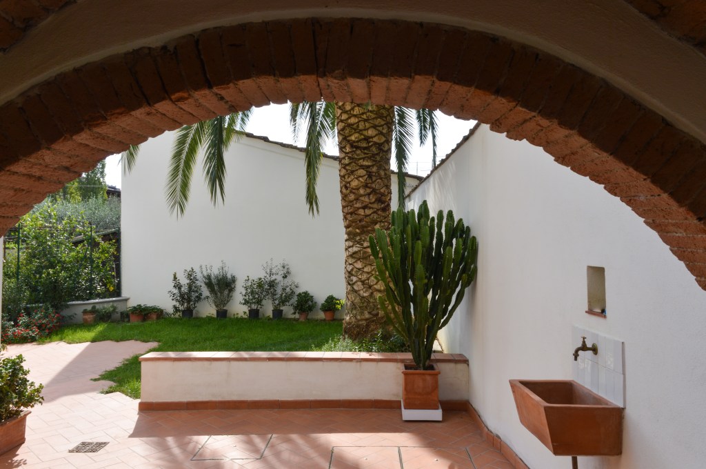 All’esterno, il giardino si configura come estensione viva dell’abitazione: la presenza di una palma, dal forte richiamo andaluso, e di un piccolo grottino ad uso taverna definiscono un paesaggio domestico intimo, mediterraneo e senza tempo.