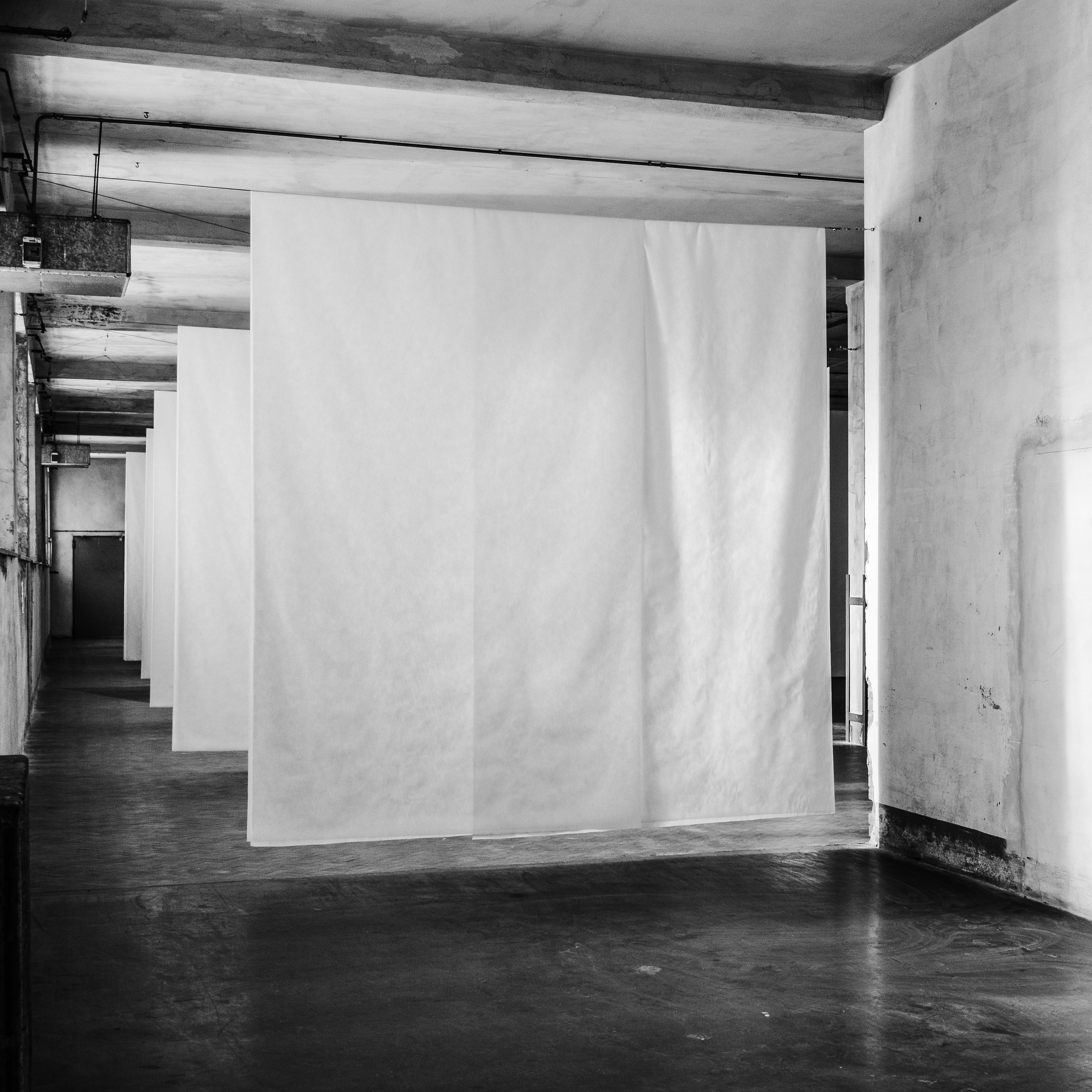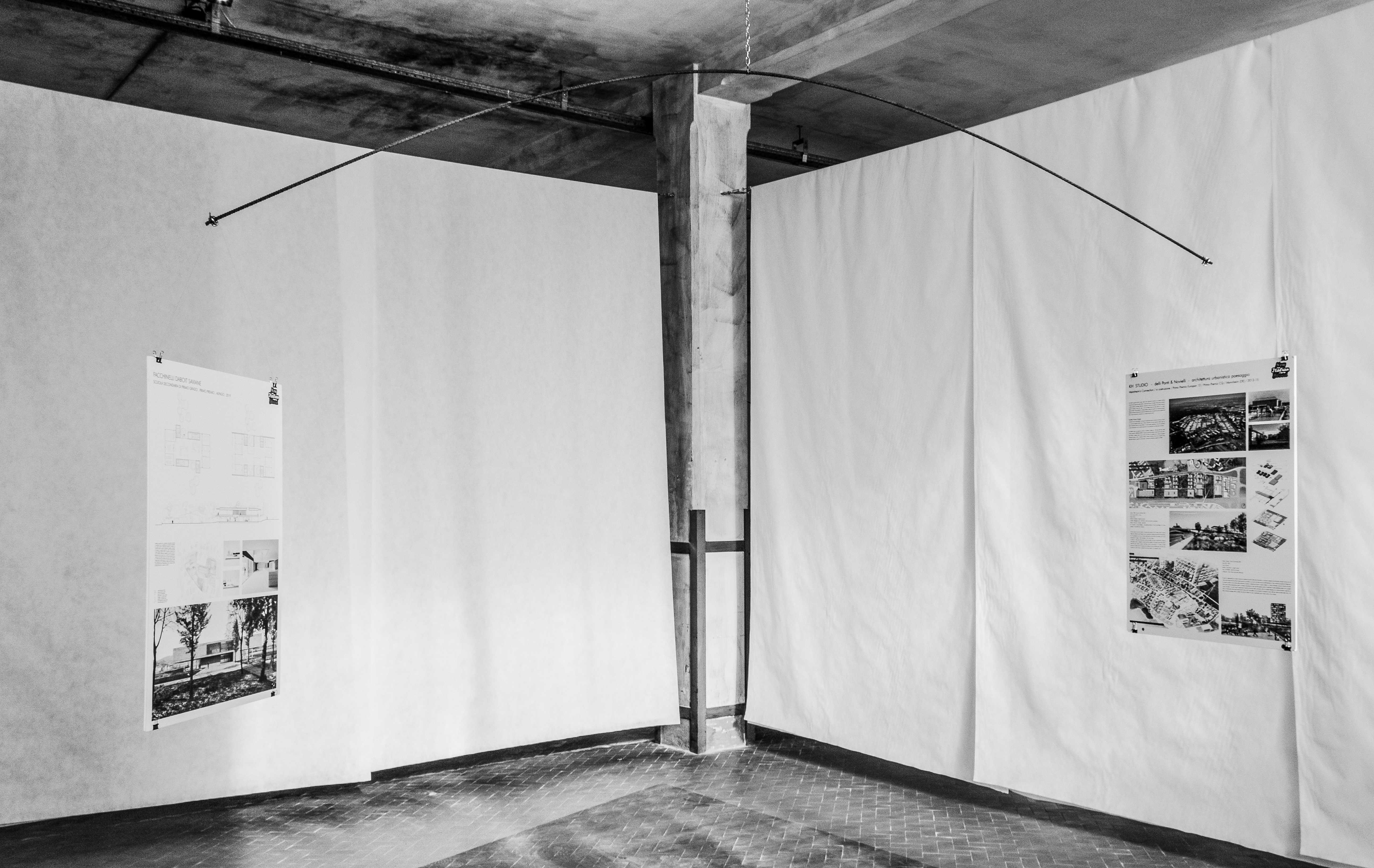La mostra, ospitata nel grande ambiente industriale della Manifattura Tabacchi di Firenze, si sviluppa su due navate in cui trovano spazio le due sezioni del Premio. Lo spazio, suddiviso in “stanze” con teli di tessuto-non-tessuto dal carattere “effimero”, ospitano un sistema di pendoli in cui le tavole di due Studi si equilibrano e fluttuano.